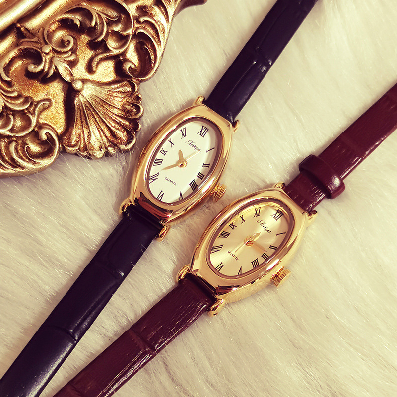 楕円形腕時計女性中古風ファッションファッション専門店ブランド防水真皮女性腕時計気質シンプル