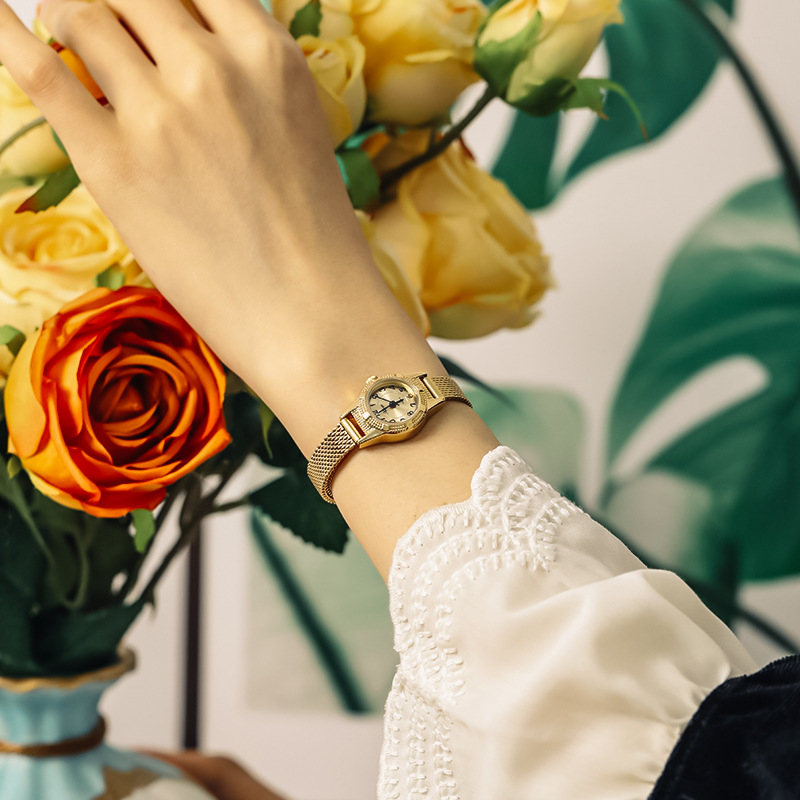 中古風網紅直播同金腕時計女性防水鋼帯宝飾ブレスレット女性時計対外貿易起爆金原単精鋼