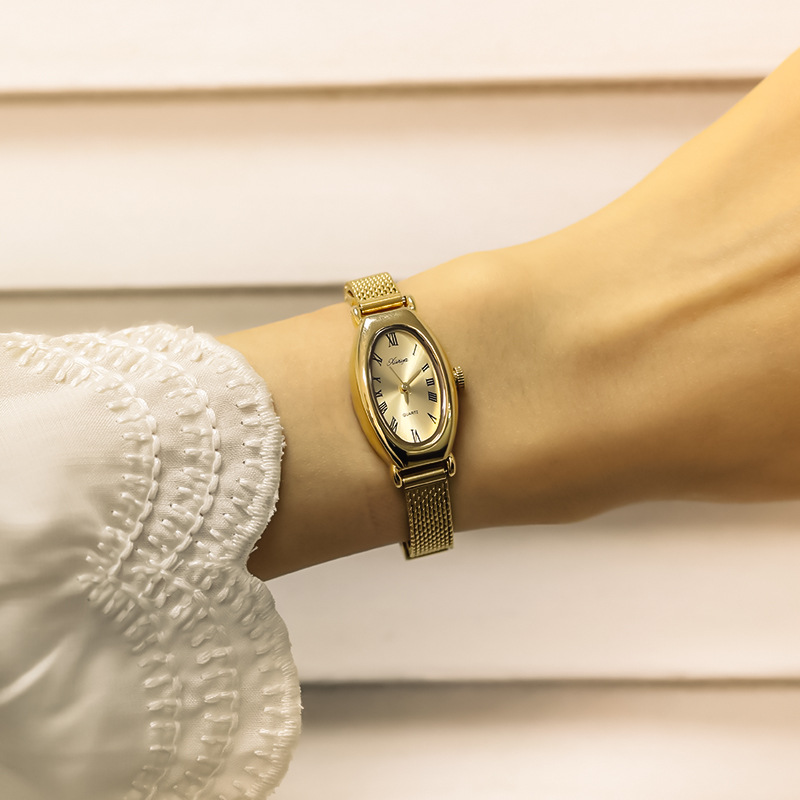 楕円形の腕時計の女性のネットは復古の小金の時計の気質の名媛の大きい札のシンプルな女性のファッションの潮流を持って生放送します。