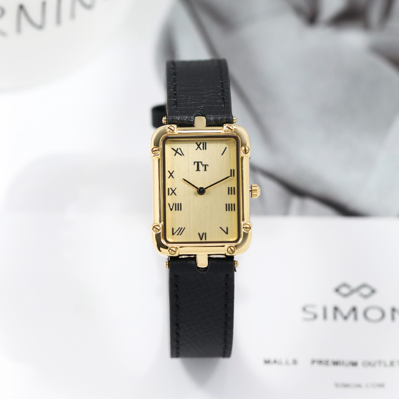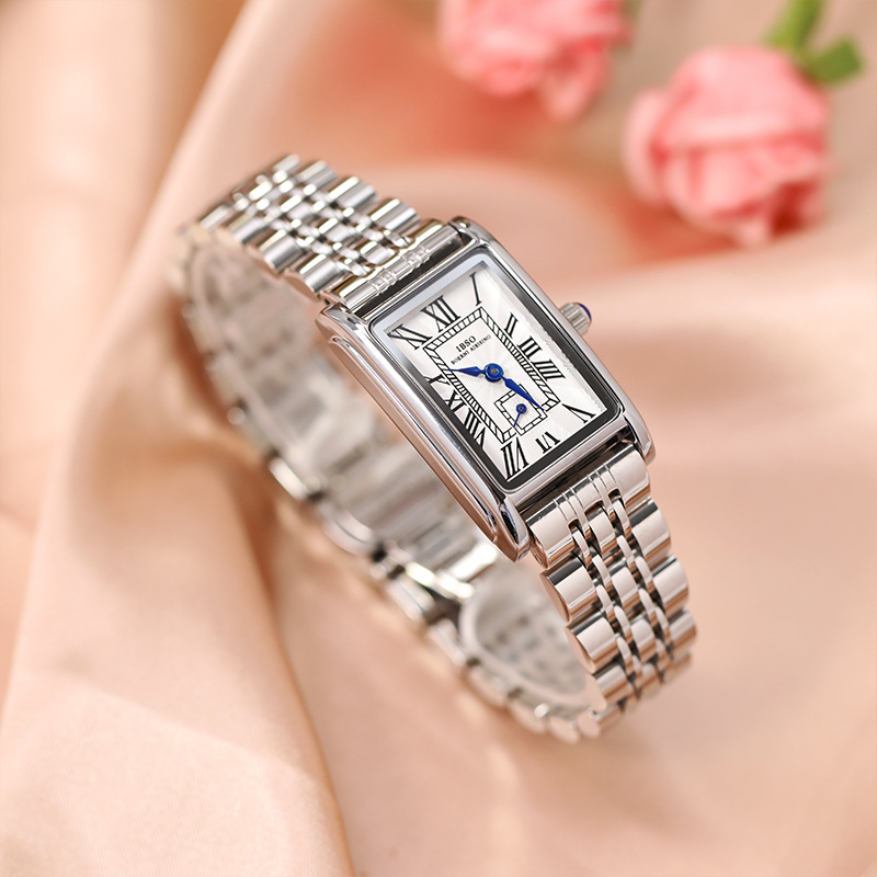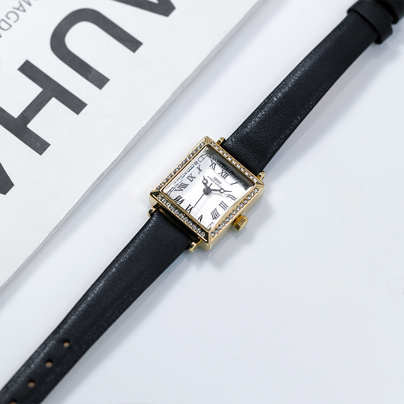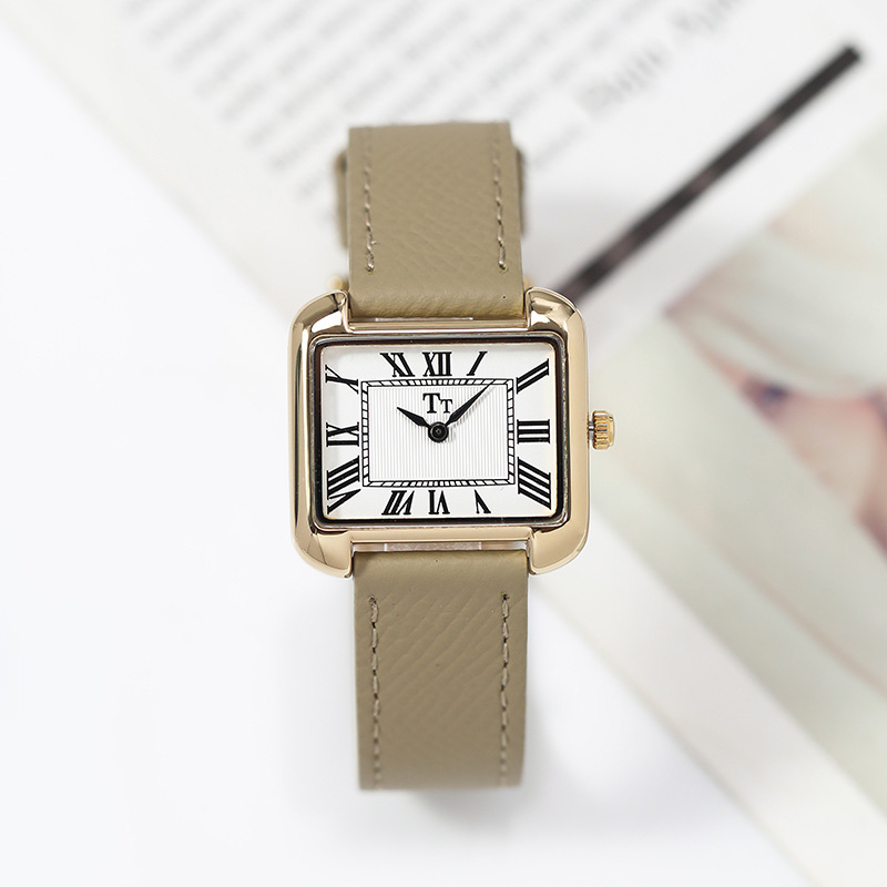 レトロ大文字板角型ローマスケール真ベルト気質腕時計女性超薄型防水生放送新製品