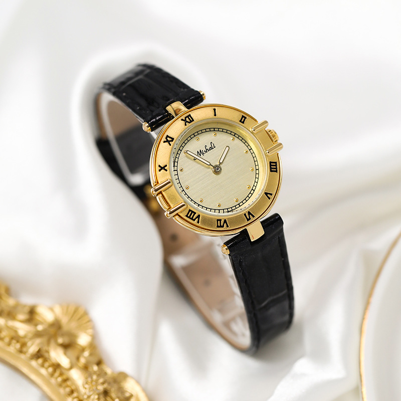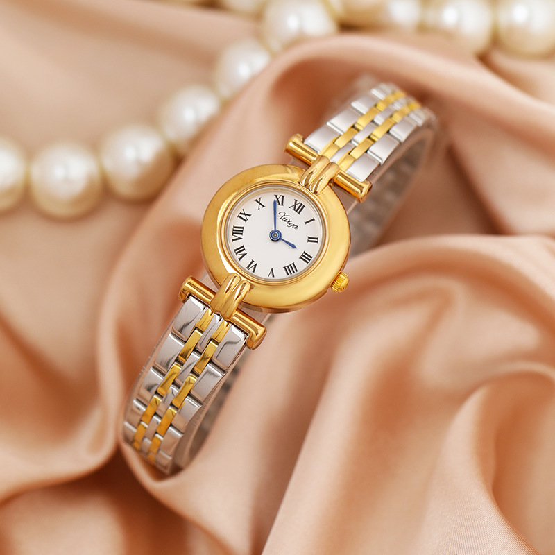 ネット赤生放送で爆発した中古風ファッションの新しい女性時計石英浅金色防水名媛気質超薄型腕時計