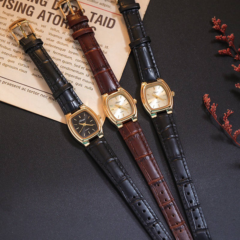 長方形の腕時計の女性の中古風のファッションの潮流の本革の気質の防水ネットの赤い女性の時計の石英の対外貿易の爆発金