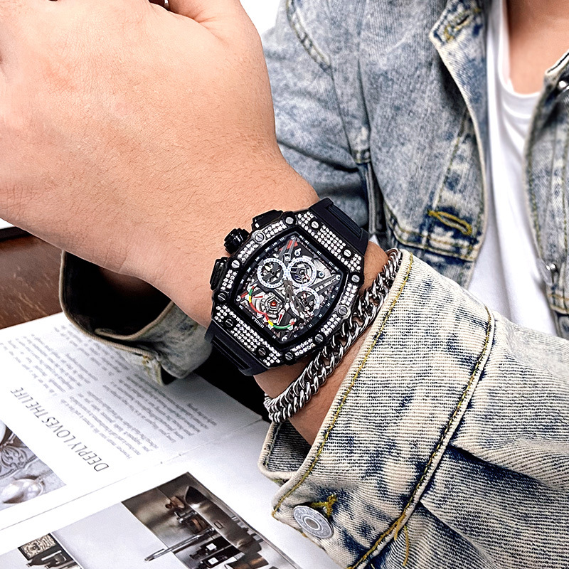 ビッグバン新型腕時計男機械時計全自動夜光欧米対外貿易テープ個性ファッションブランド男時計
