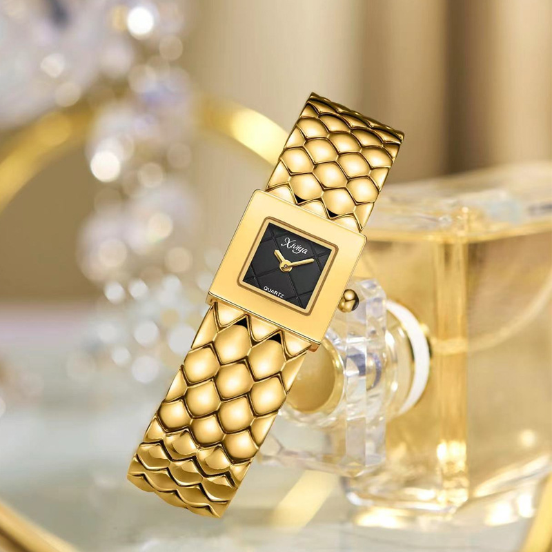 新型の四角形の腕時計の女性のファッションはネットの赤い名媛の大きい札の専門店の正規品の鋼帯の防水の女性の腕時計を生放送します。