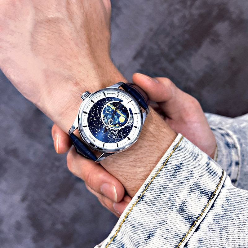 星空の腕時計の男性の機械の時計の新型の防水の本物のベルトの蝶は防水の個性の潮流を掛けて人気のブランドを生放送します。