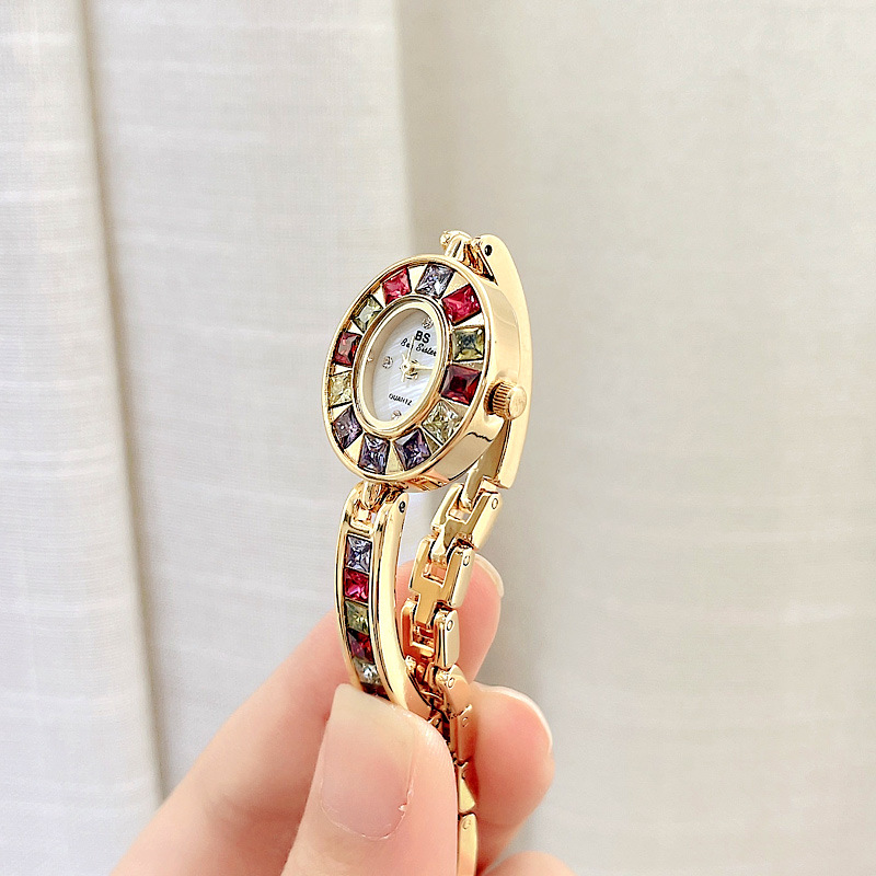 カラー宝石モザイクファッショントレンド防水腕時計女性洗練されたスチールベルト小型女性腕時計人気新型