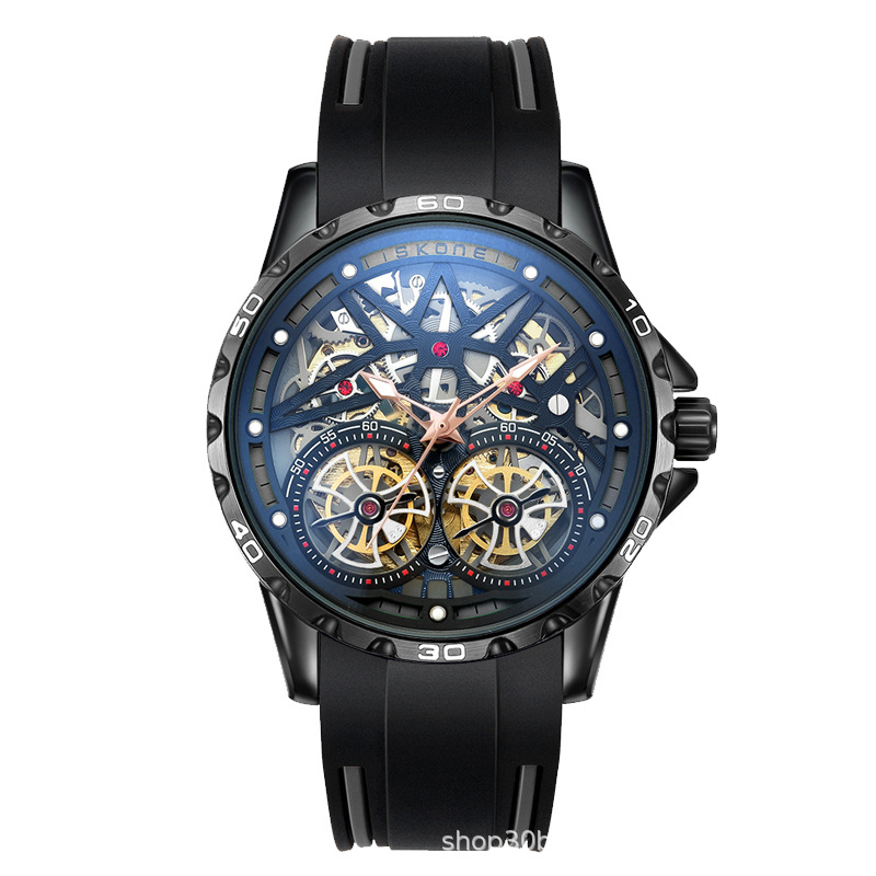 2022新型男性運動機械時計ネット赤生放送透かし彫り腕時計男性双陀飛輪テープ防水男性時計