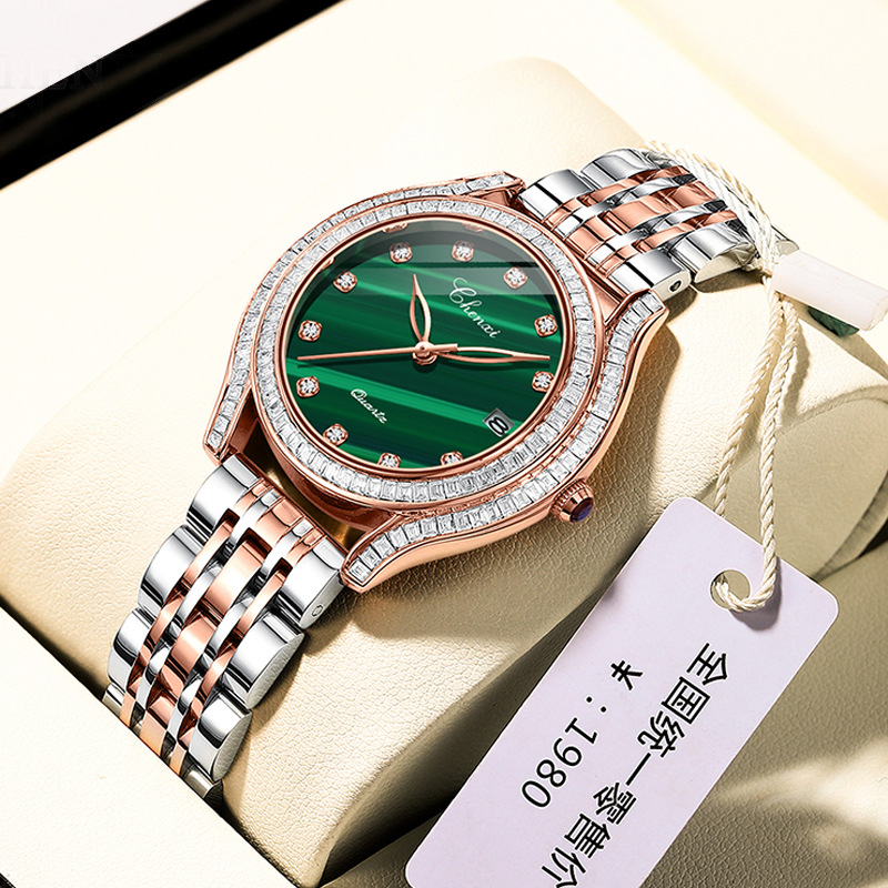 新型の専門店の規格品のファッションの潮流の腕時計の女性の防水の爆発の女性の時計はダイヤモンドの祖母の緑の鋼帯の女性の腕時計を入れます。
