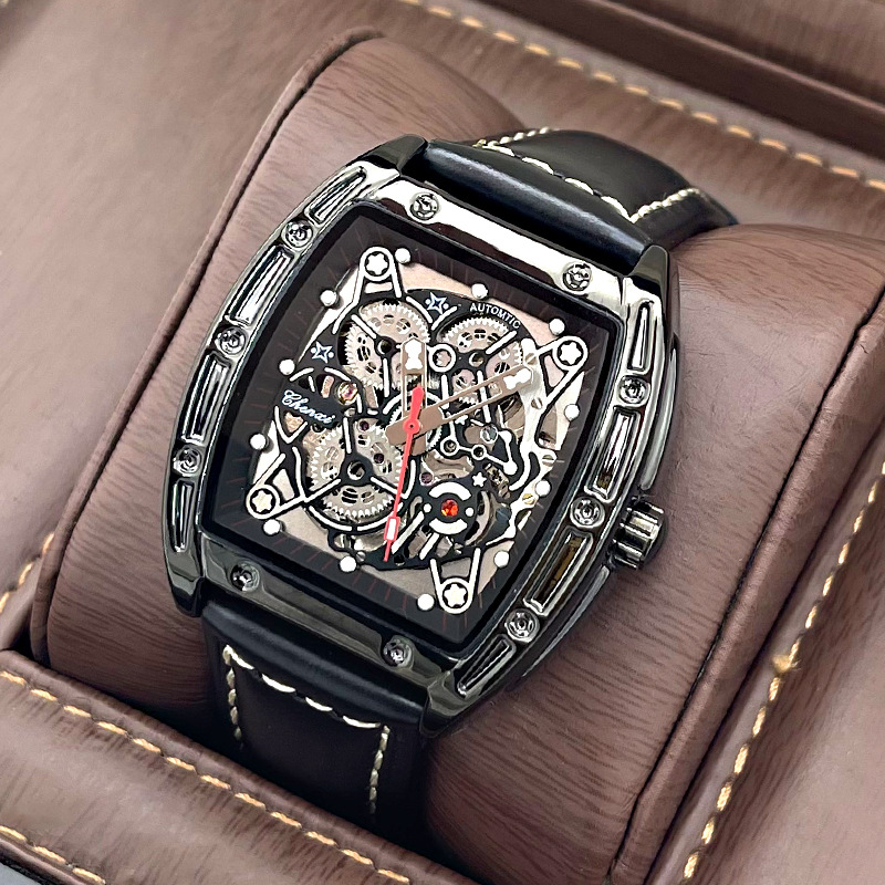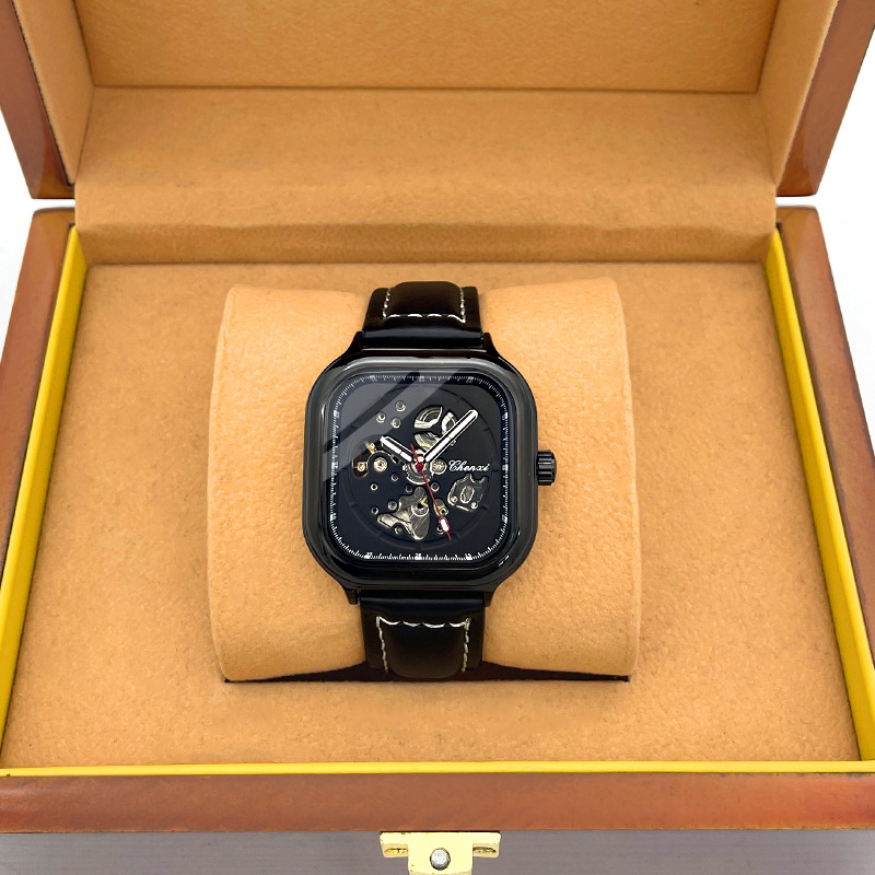 正方形の腕時計の男性の新型の機械時計の全自動防水の本物のベルトの個性の潮流の男性の時計の夜光の透かし彫りの男性の時計
