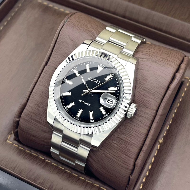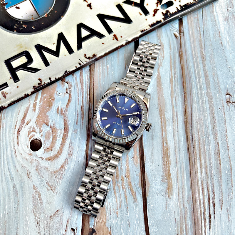 ブルーログ型腕時計男性防水精鋼全自動機械時計シンプルブランド夜光五押刃鋼帯男性時計