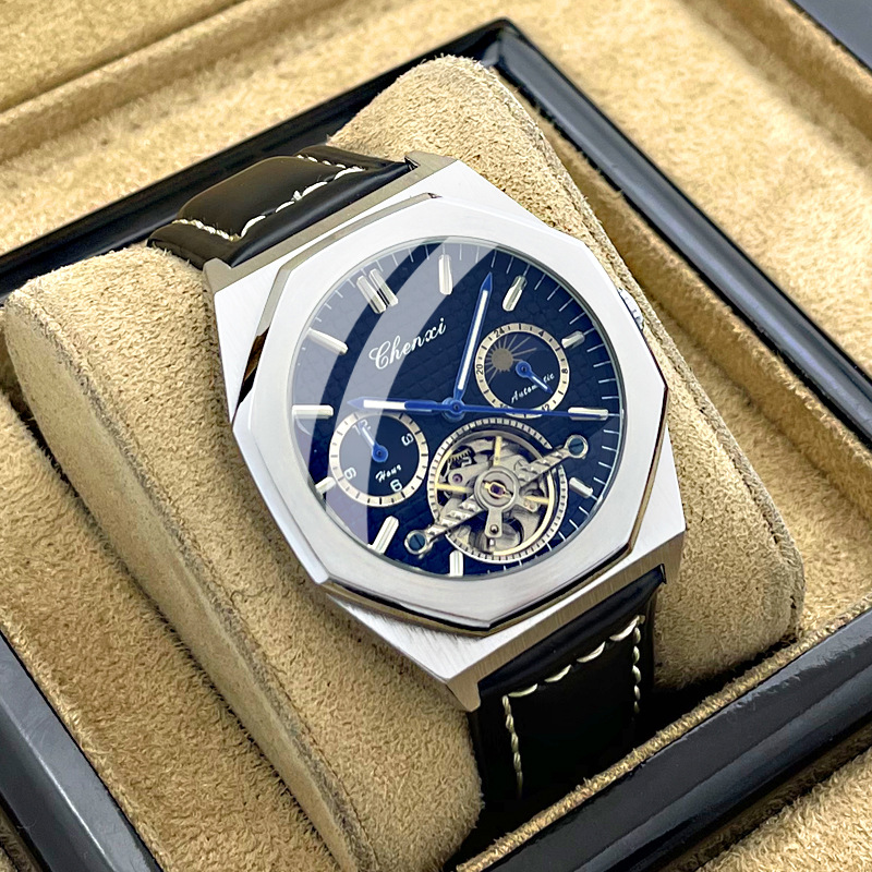 多機能全自動機械時計ジャイロフィールホイール大文字盤腕時計男性防水本革男性生放送男性時計新型