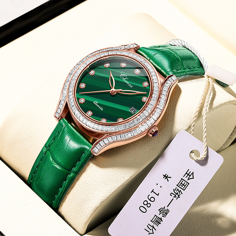 ピーコックグリーン腕時計の女性の贅沢なファッション防水ベルトの女性の時計の精巧な女性の石英時計は人気の新型を生放送します。