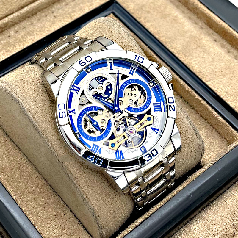 新型の透かし彫りの大気のファッションの潮流の真ベルトの防水の全自動の機械の時計の腕時計の男性のまぶしい個性の男性の時計