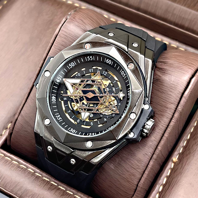 ビッグバン新型テープ大文字板ネット赤同型表男機械表全自動透かし彫りクール個性男表