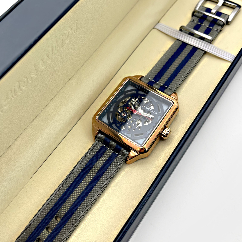 正方形のナイロンベルトの腕時計の男性の潮の防水の超薄い機械の時計の全自動の正規品の専門店は人気の新型を生放送します。