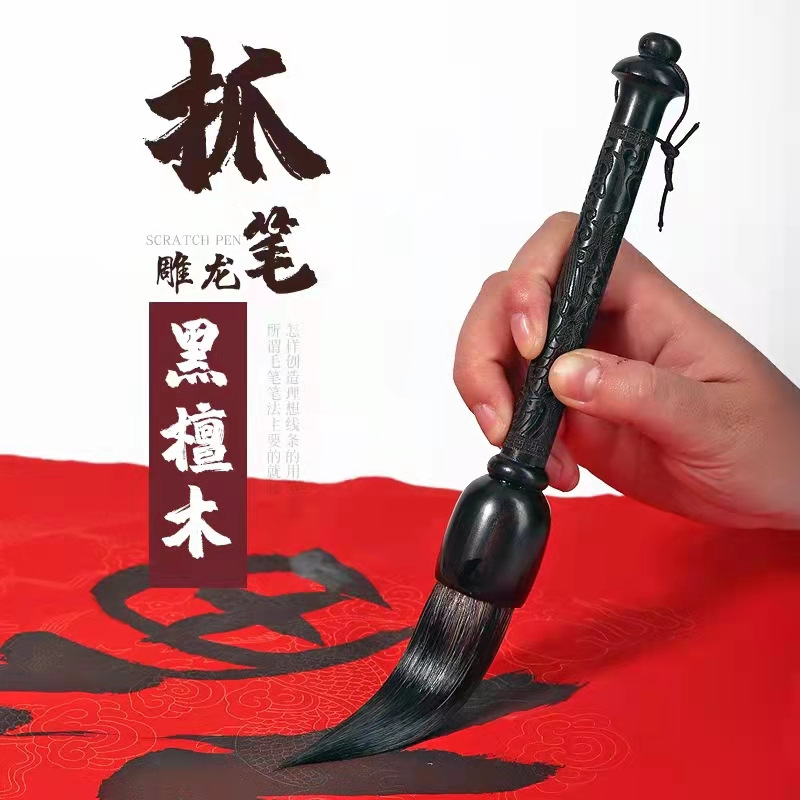 卸売黒檀彫刻龍ショートポールペン、プロ仕様の狼毛と大型筆、対句を書くためのペン