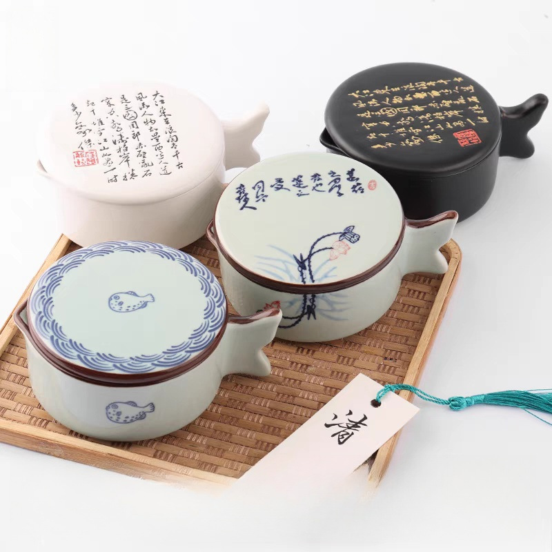 書斎多機能インクプール セラミックインクトレイ 蓋付き セラミックインクプール インクカートリッジ 書道専用インク皿 インクペンウォッシャー
