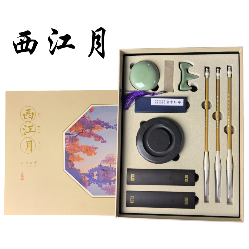 高級西江月-書韻文房四宝セット筆墨紙硯礼箱プレゼント兼ミリ毛筆大中小