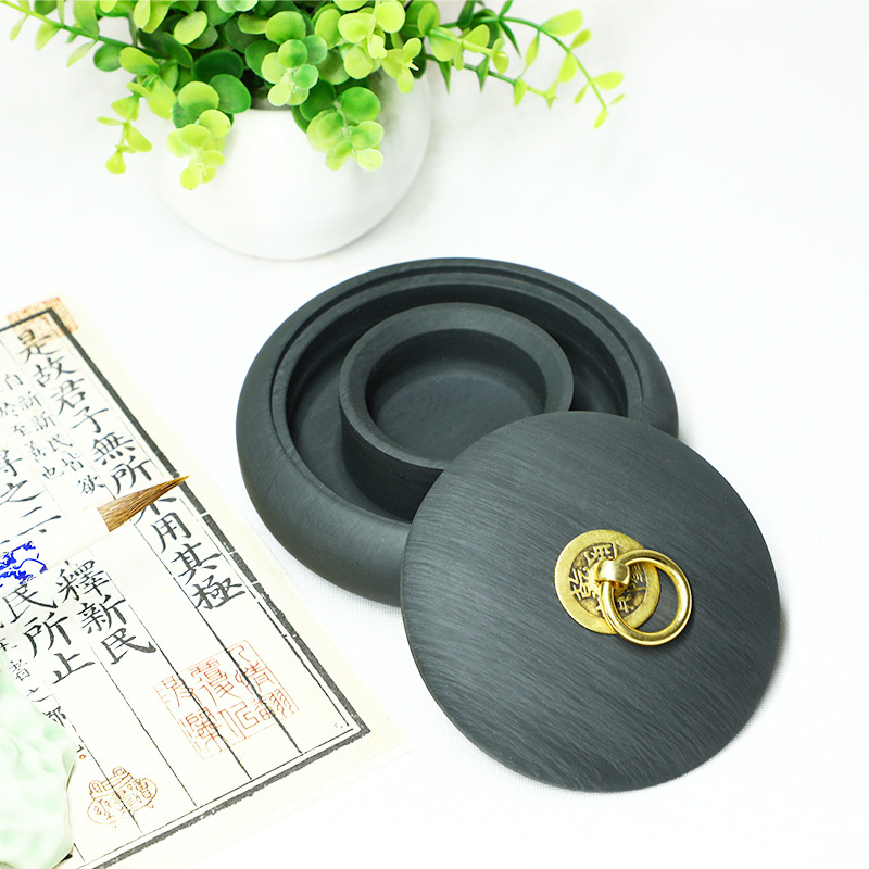 新商品の厚い鍋硯台の書道専用の蓋付きの防乾墨硯の石材の鍋硯セットは墨を研ぐことができます。