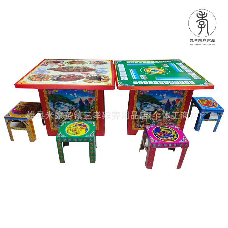 段ボール製のダイニングテーブル、段ボール製の麻雀テーブル、紙の結束、葬儀用品、葬儀用品メーカー、祭用品
