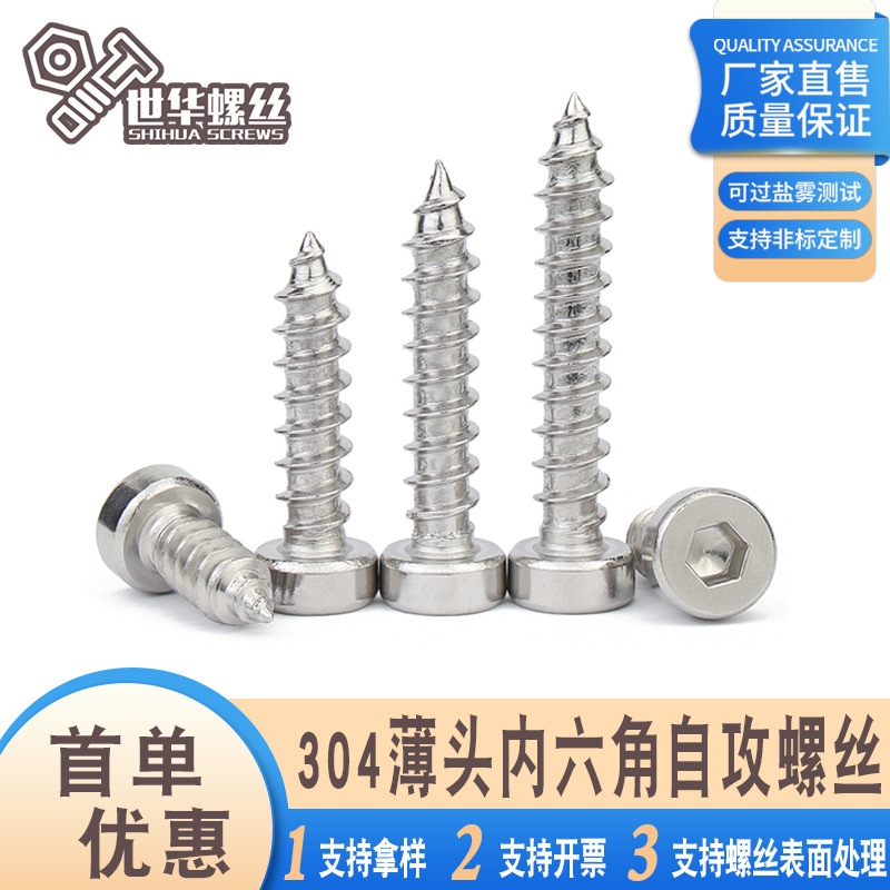 304 ステンレス鋼低頭六角穴付きタッピンねじ 円筒頭六角薄頭六角穴付きタッピンねじ