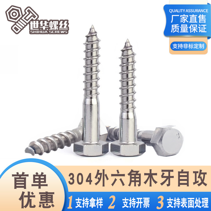 304ステンレス外六角タッピングねじ半ねじ六角頭木歯ねじDIN571六角タッピング