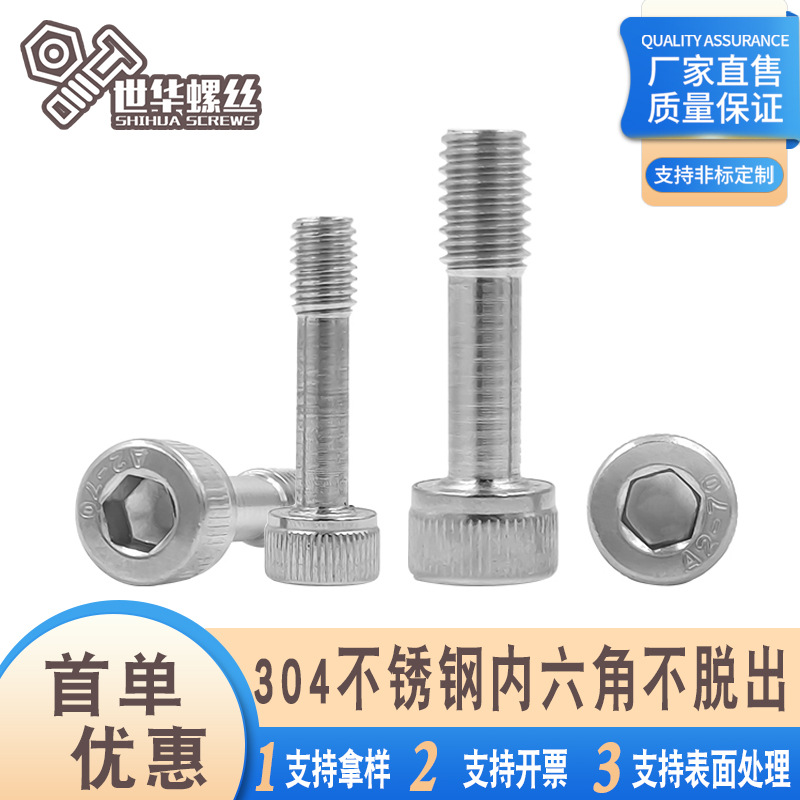 304 ステンレス鋼円筒頭六角穴付きネジ、脱落防止半ネジローレット六角穴付きネジ