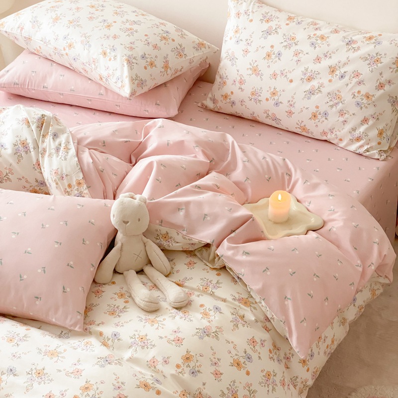 2024新型ins小清新シリーズ4点セット1.5mシーツ4点セット花小莱-粉