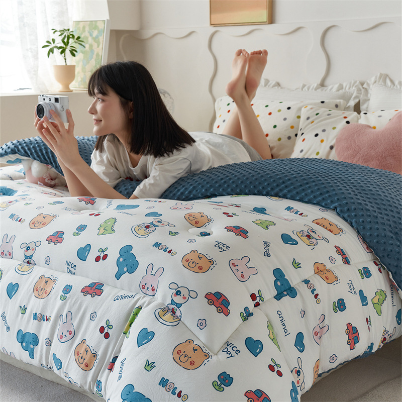 2023新型棉プリント四点セットシングル人水機で夏の子供の夏に寮の薄い布団を洗うことができる