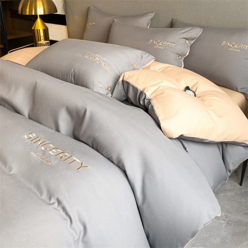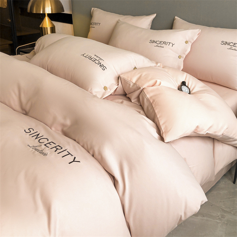 新型ファッションシンプル刺繍綿四点セット春純色綿100% 裸寝具
