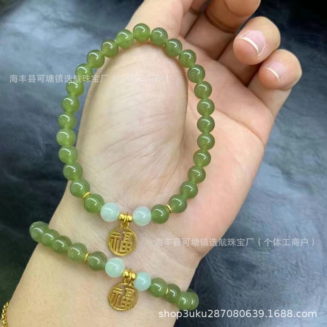 和田玉青黄口6mmブレスレットdiy925銀翡翠軽豪華小衆福牌ペンダント古法手串