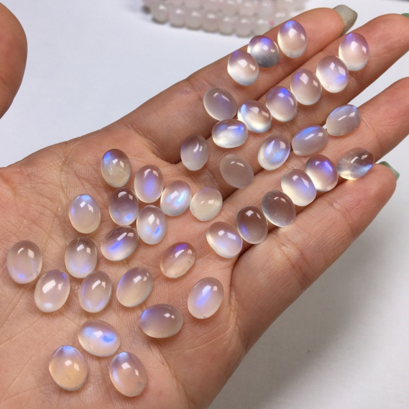 天然ブルー月光石卵面リングクリーム体強光指輪diyモザイク部品月光石ブルーレイ卵面