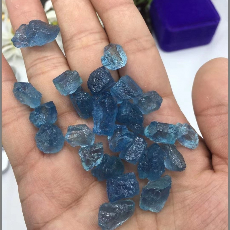 天然海藍宝原石不規則裸石diy象眼ペンダントペンダントバック雲青い砂利青原石