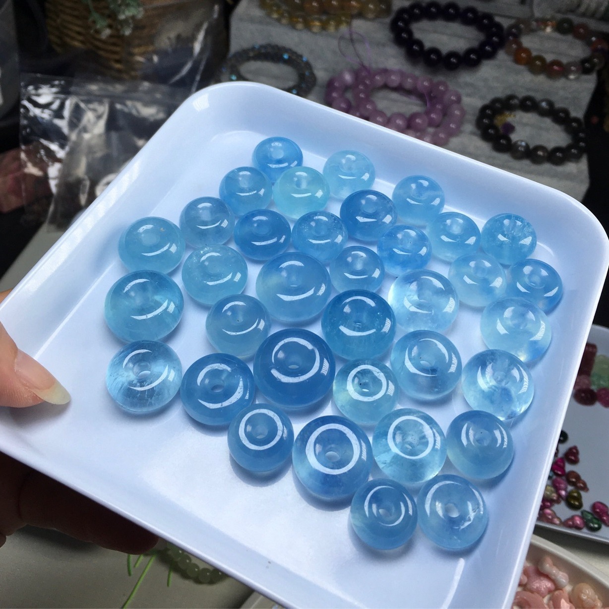 天然のA商品の翡翠の小さいボタンは青い水の翡翠の氷を飾ってそろばんのビーズのdiyのペンダントのスペーサーのビーズの卸売りをします。