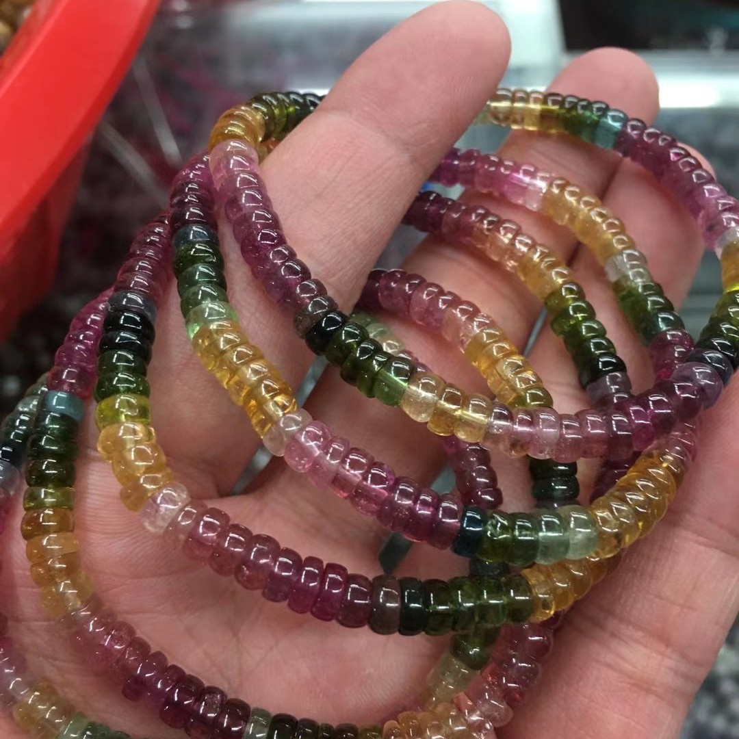 原鉱ブラジル碧璽手串マカロンそろばん玉ブレスレット緑碧璽カラー単輪キャンディー色虹宝石