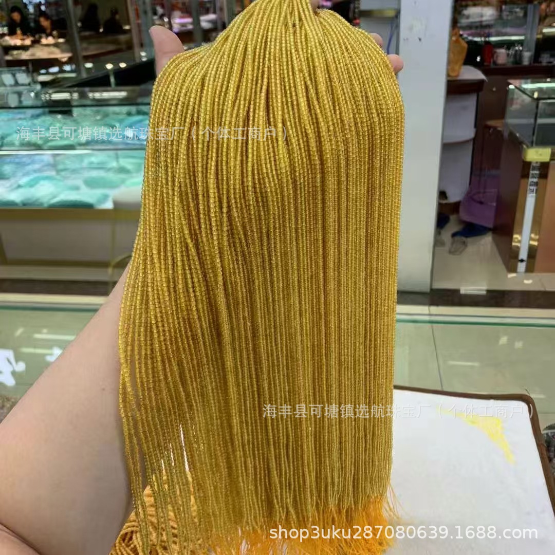 天然金発晶2mm小米珠長鎖黄発晶配珠小流蘇diy配鎖直播供給源