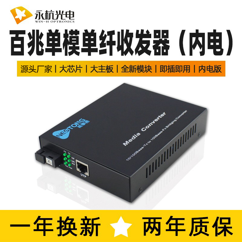 永杭110-250v光ファイバトランシーバシングルモード単芯光電変換器ギガビット内電1対強化版