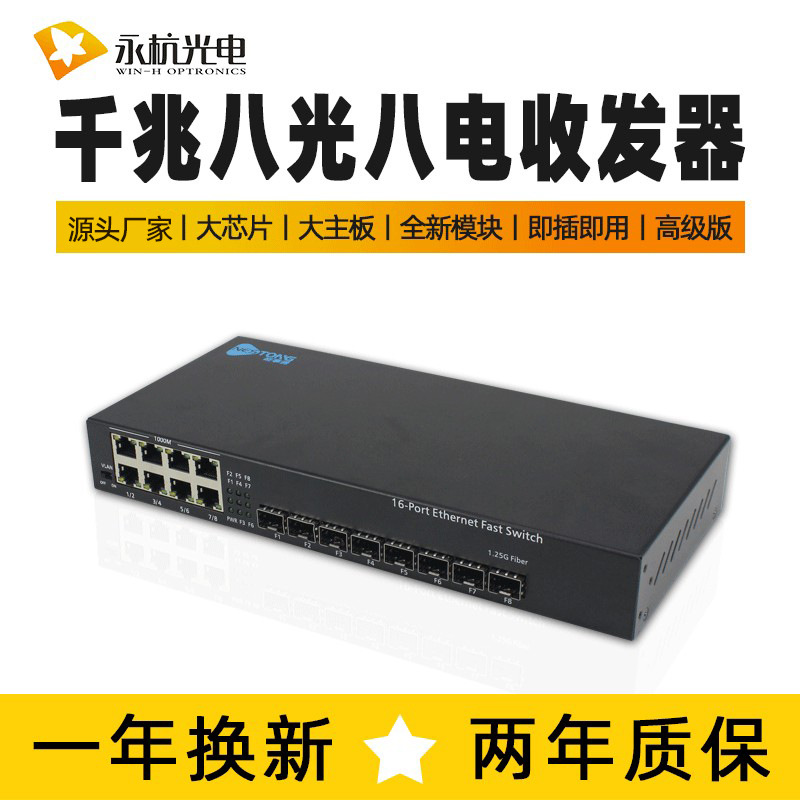 永杭ラック式全ギガ8光8電単モード光電トランシーバ8路光ファイバスイッチ8口sfp