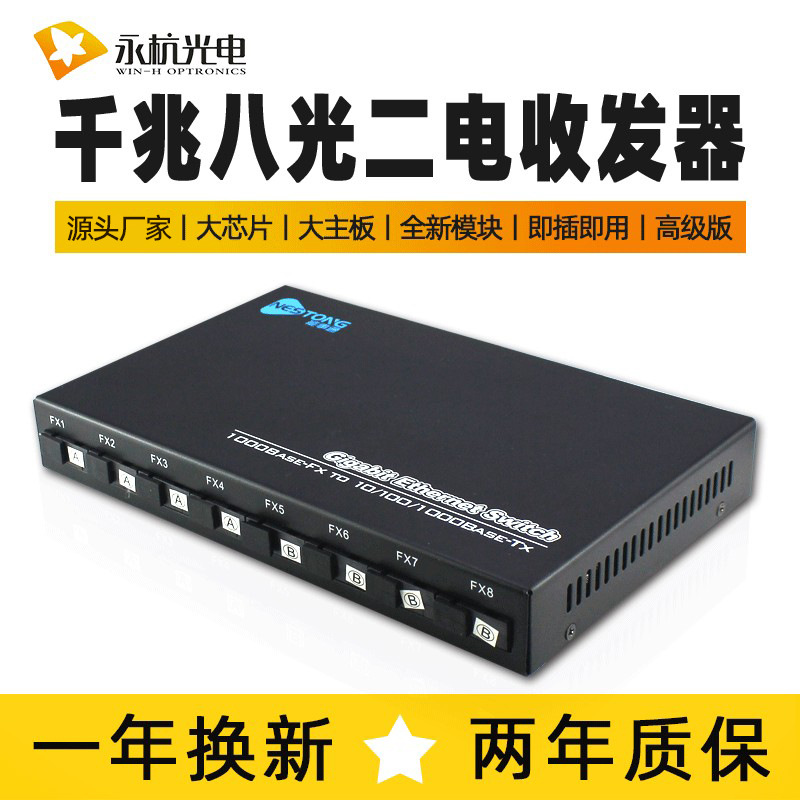 メーカー卸売ギガ光ファイバトランシーバシングルモードカスケードスイッチ光電変換器8光2電高級版