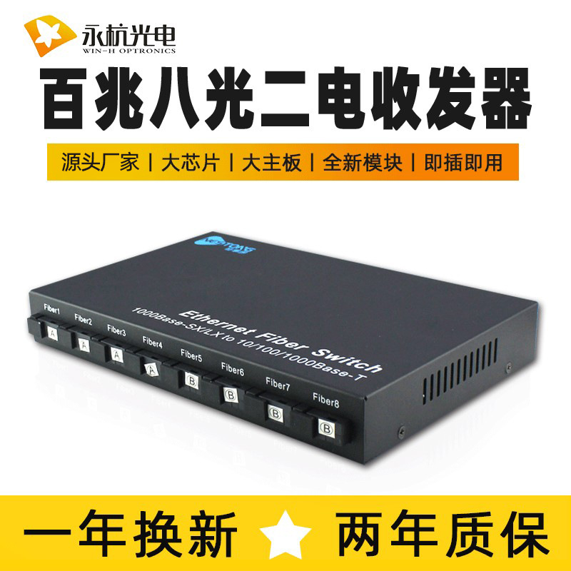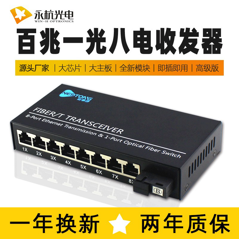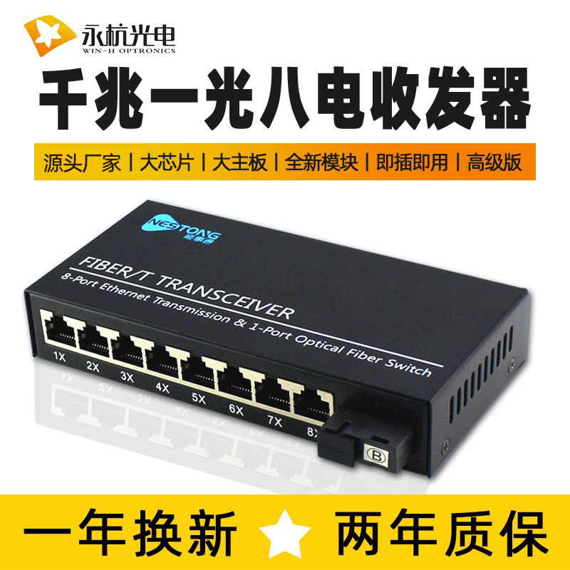 メーカー卸売光ファイバトランシーバー百兆シングルモードカスケード交換機1光8電気監視変換器高級版