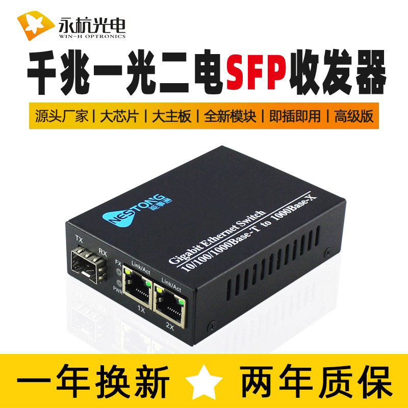 メーカー卸売ギガ光ファイバートランシーバシングルモードカスケードスイッチ1光2電気コンバータsfpプレミアム