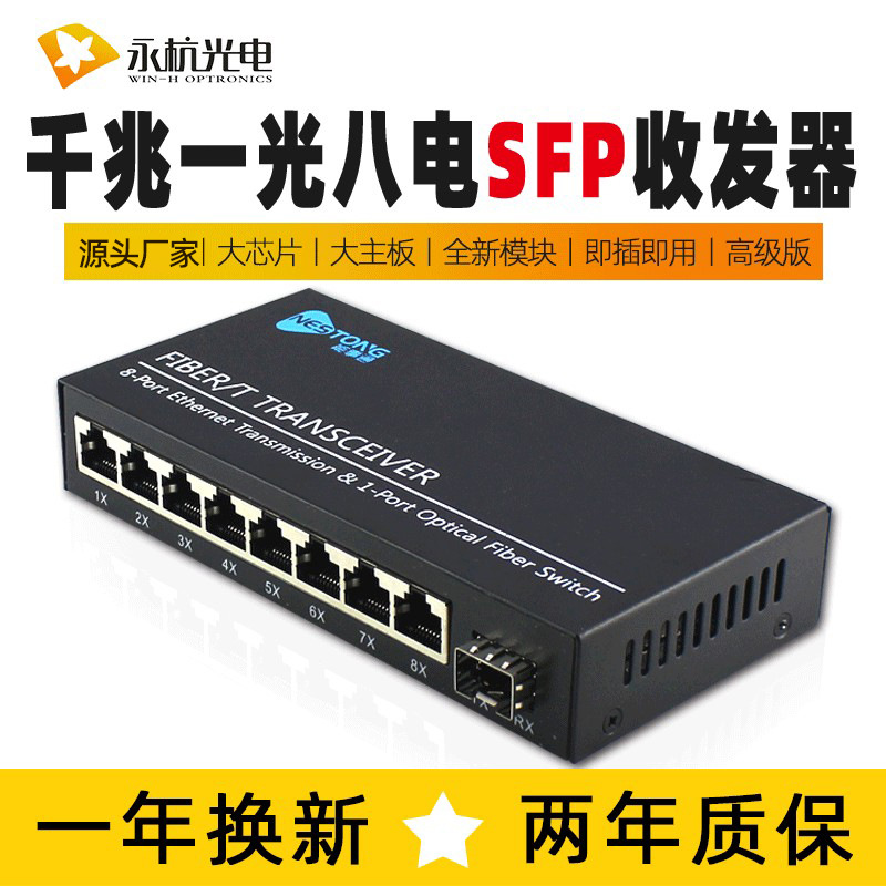 メーカー卸売ギガ光ファイバートランシーバーシングルモードカスケード交换机1光8电気コンバータsfpプレミアム
