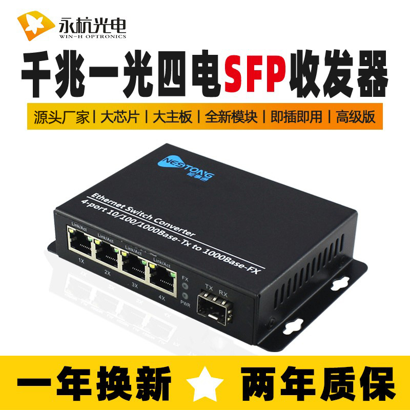 メーカー卸売ギガ光ファイバートランシーバシングルモードカスケードスイッチ1光4電気コンバータsfpプレミアム