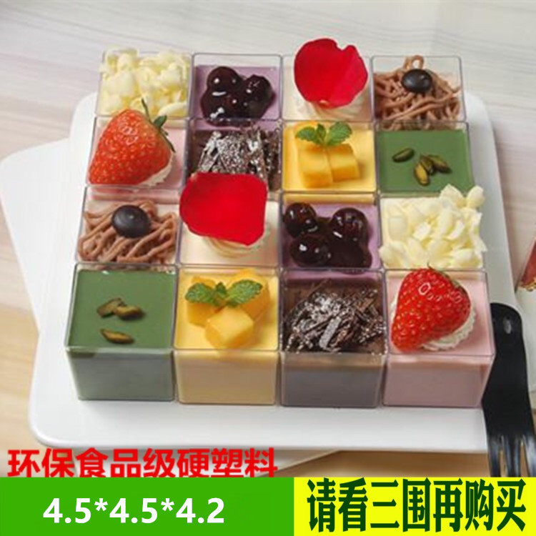 4542果立方角型透明ムースプラスチック九宮格ケーキ木糠ゼリーカップ布丁カップ1000個
