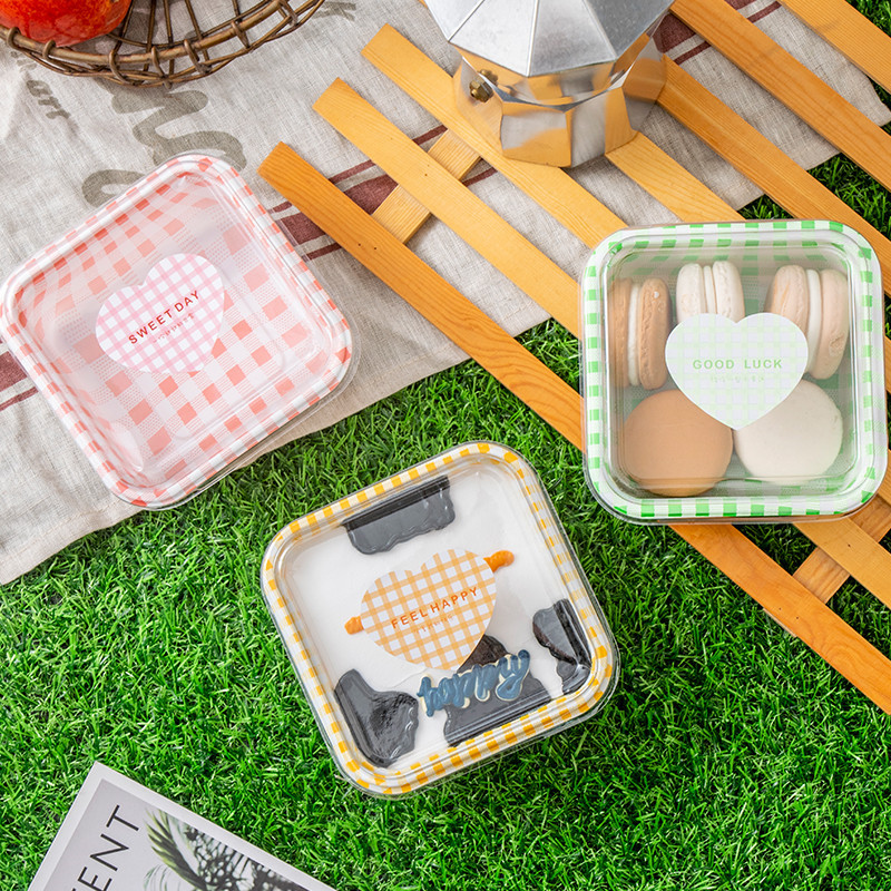 ティラミス弁当箱和風格子縞包装箱肉松小貝春遊ケーキ箱甜品箱包装箱