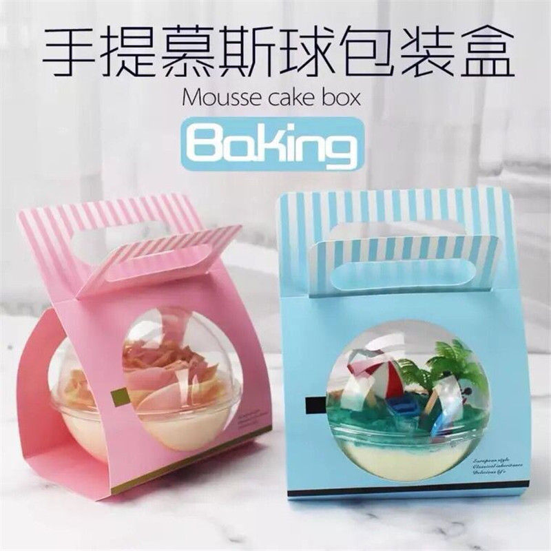 手提げケーキ箱透明中空球形包装箱プリンムース箱焙煎西点包装新年ギフト箱