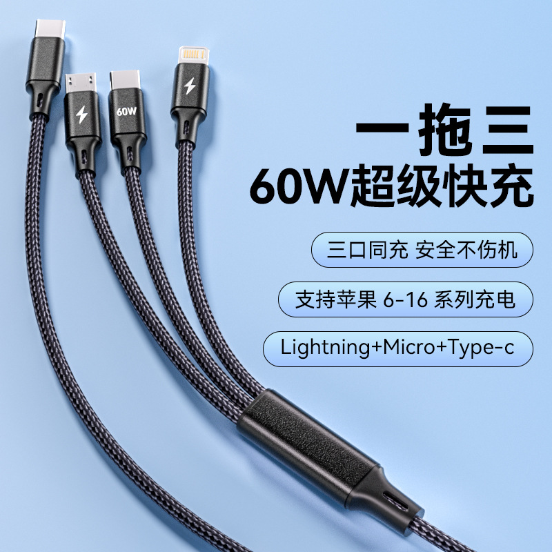 データ線三合一編組充電線一引き三速データ線60w三頭多頭速充多機能