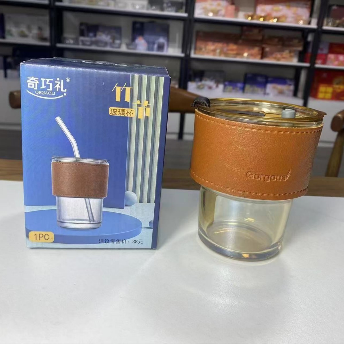 皖美之雅竹节玻璃杯400ml玻璃杯竹节杯带吸管开业引流小礼品批发