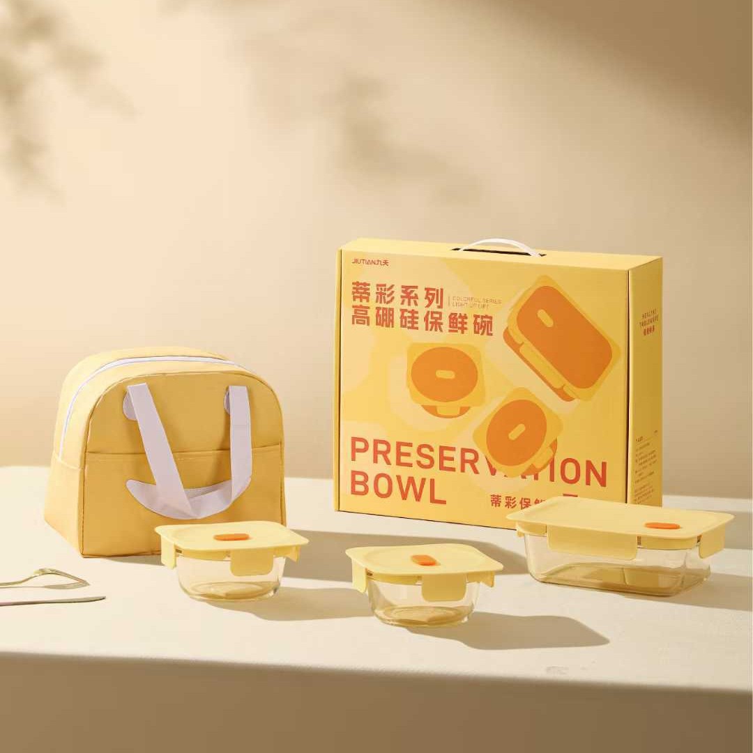 九天蒂彩系列保鲜碗四件套玻璃密封保鲜饭碗套装员工入职礼品批发