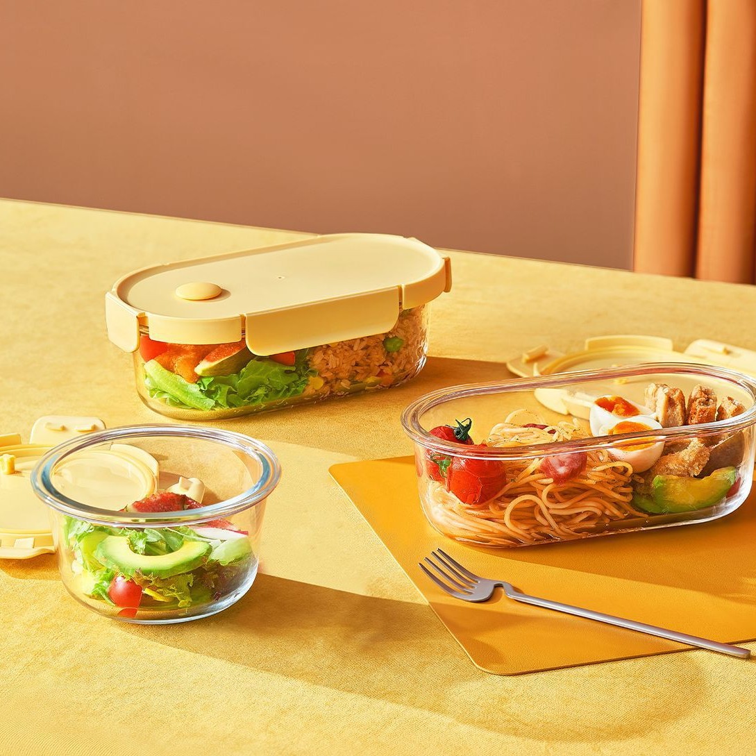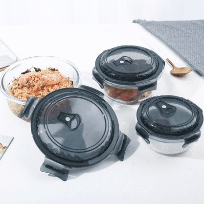 Haosenhuo エンジョイタイム鮮度保持ボウル 3 点セット ガラス鮮度保持ボウルセット 密閉ボウル イベント ギフトセット 卸売